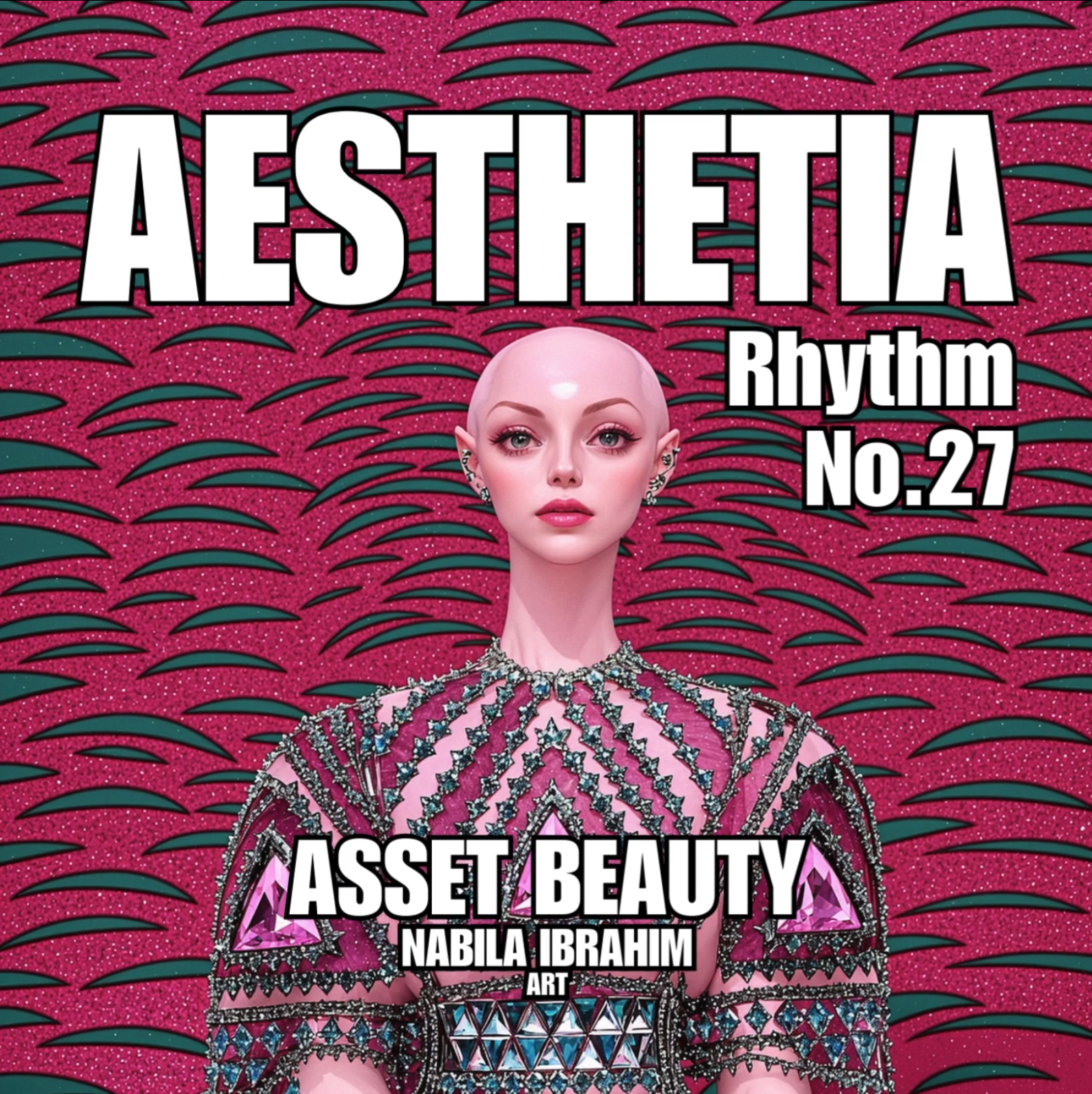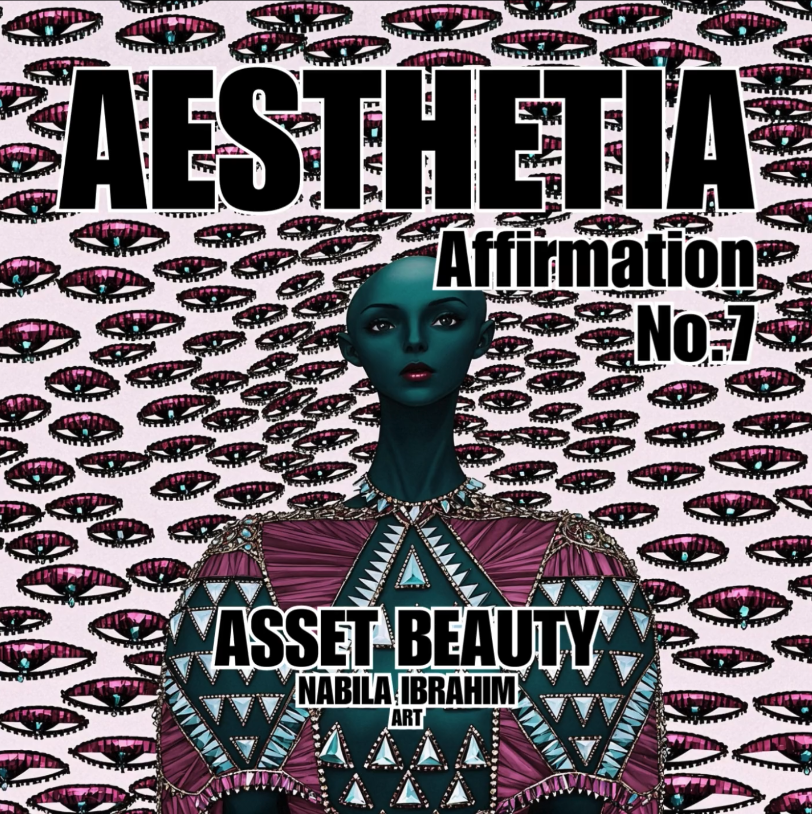 AESTHETIA Rhythm was created by merging Nabila’s written affirmations and extending them lyrically with AI generative music technology to create a diverse range of beauty affirmation songs. These songs melodically voice the visual beauty affirmations of each Aesthetia Beauties portrait.